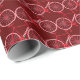 Este papel de embalagem para o Natal tem um padrão de bicicletas vermelhas com listras de cana vermelhas e brancas no quadro. O fundo é vermelho-marrom escuro. Excelente de presentes para seus amigos ciclistas.