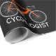 Bicicleta laranja com texto do CYCOLGIST sobre fundo preto. A cor de fundo pode ser alterada.