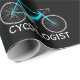 Bicicleta azul-aqua com texto do CYCOLGIST sobre fundo preto. A cor de fundo pode ser alterada.