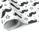 Papel de envolvimento bonito que caracteriza um teste padrão dos bigodes pretos do guiador e de estrelas azuis do aqua. Design brilhante e do divertimento. Excelente para uma festa de aniversário da festança do bigode ou um chá de fraldas pequeno do homem. Design e ilustração por MheaDesign.