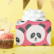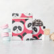 Pasta de aniversário embrulhando papel com fundo rosa.