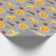 Embalhe seus presentes com charme aconchegante de Natal usando este delicioso papel de embrulho inspirado na Escandinávia! Com um padrão festivo de cavalos Dala de biscoito, fatias de laranja secas, paus de canela, cravos, anis-estrelado e grãos de café em um fundo cinza suave, este design traz calor e alegria para cada pacote. Perfeito para o Natal, aniversários de inverno, presentes caseiros e presentes para amantes da comida.
