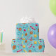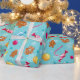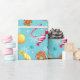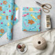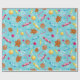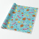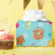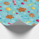Papel de embrulho com homens de biscoito de gengibre, casas de biscoito de gengibre, bastões de doce e doces duros.
