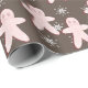 Papel De Presente Biscoito Rosa e Flocos de Neve Molhando Pa