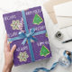 Coleção de biscoitos de açúcar Feliz Feriados em flocos de neve brancos e fundo roxo. A cor de fundo pode ser alterada.