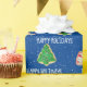 Coleção de biscoitos de açúcar Feliz Feriados em flocos de neve brancos e fundo azul. A cor de fundo pode ser alterada.