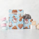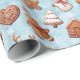 Comemore em estilo com este papel de embrulho de biscoitos giros. Perfeito para decorar seu Natal ou festa de férias. Ilustrações cheias de aquarelas com figuras de biscoitos de pão de gengibre (uma árvore de Natal, homem com chapéu, boneco de neve, estrela, coração, renas, casa e bola de Natal) em um fundo azul e branco com flocos de neve. Brincadeira e encantadora, é a maneira perfeita de dar o tom para uma celebração divertida e desejar aos seus entes queridos um Feliz Natal.