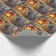 Papel De Presente Black Cat Sitting Fireplace with Christmas Lights