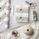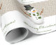 A ilustração do desenho de Destei de um bonitinho sorridente boneco de neve. O boné de neve está vestindo um chapéu preto e um cachecol que tem listras verdes e brancas. A cor de fundo é bege com um padrão de pontos brancos. Sob a imagem, lê-se "Feliz Natal!" em cor verde. Há também uma área de texto personalizável onde você pode escrever para quem o presente é ou de quem ele é, por exemplo.