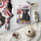 This patriotic gift wrap keeps things simple, cheerful, and right for the occasion. The design features a smiling black Labrador puppy in an Uncle Sam hat, with American flags and classic red, white, and blue bunting—recognisably American without going over the top.
