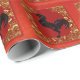 Papel De Presente Black Rooster Chinês Zodibose Vermelho e Dourado