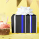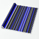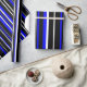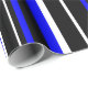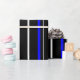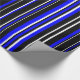Papel embrulhando com listras em preto, azul real e branco. Cores perfeitas para embrulhar qualquer presente. Personalizável.