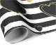 Bold black and white stripe pattern wrapping paper accented with luxe gold-style hearts for a chic, romantic look. A high-contrast design with a modern glam mood.