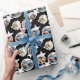 Personalized wrapping paper with five of your photos against a black background with white stars. The photos fit into a round white frame. Simply pick five photos you love for this starry wrapping paper, perhaps of your family or the birthday girl or boy, and upload them to the template.