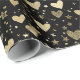Black backgrounds with gold sparkly hearts wrapping paper, suitable for bridal showers and weddings.