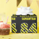 Este design de papel de embrulho, divertido e com tema de aniversário apresenta um grande número "84" com um padrão listrado amarelo e preto, juntamente com a mensagem "Feliz 84.º Aniversário", e um nome personalizado. O fundo é preto colorido. Um papel de embrulho como este pode ser usado ao embrulhar presentes que são dados a alguém em comemoração do seu oitenta e quarto aniversário. [~Z0000381]