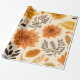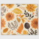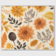 Um design de outono vibrante, com grandes flores florais de tona quente cercadas por um conjunto de folhas delicadamente ilustradas. Os amarelos do ouro, as laranjas queimadas e os browns profundos capturam a essência da beleza esmaecida do outono. As samambaias e ramificações suaves adicionam textura a este padrão equilibrado, com cada elemento fluindo organicamente contra um fundo macio e neutro. A interação de cores e motivos naturais evoca um encanto sereno e rústico.