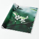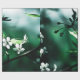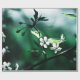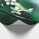 Vista aproximada da cereja branca floresce dentro a cerejeira. Brincar de cor verde e branca, sombras claras e escuras. - Os sopros estão espalhados pelo vento e o vento não se importa nada, mas as flores do coração que nenhum vento pode tocar. (Yoshida Kenko)