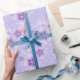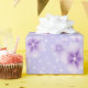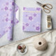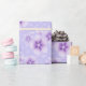 Flores translúcidas em padrão de bolinhas branca e fundo roxo lavanda.