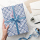 Bold Stylized ovate leaf pattern gift wrap paper. Blue and white pattern gift wrap. Big roll glossy gift wrap. This design comes from handmade tile from the Oregon tile maker Fay Jones Day.
