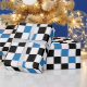 Papel De Presente Blue Black White Checkered Pattern Design