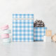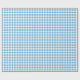 Papel de enrolamento projetado com um padrão de gingham azul-bebê verificado.