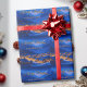 Papel De Presente Blue Gold Custom Inverno Aldeia Natal