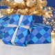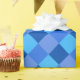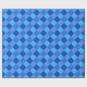 Quadrados azuis como uma manta de retalhos é o padrão desse papel de embrulho.