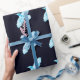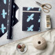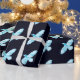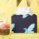 Uma imagem de linha simples, brilhante, azul e branca de um Raven (Corvus corax) em uma imagem de fundo estrelada.