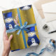 Papel De Presente Blue Snowmen no Dourado Natal