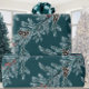 Um papel elegante e sofisticado de embalagem de férias, que inclui as terras azuis do ramo da árvore de aspersão na diagonal com cones brancos e bagas vermelhas, contra fundo azul-lacrimogêneo profundo.