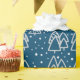 Uma maravilhosa praça de inverno de árvores de Natal ilustradas na neve, esta design adiciona um toque festivo aos seus presentes e pacotes durante a temporada de festas. As cores incluem cinzas-bege-claro com neve branca sobre um fundo azul profundo contrastante.