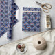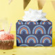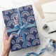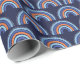 Este papel de embrulho giro e branco apresenta um arco-íris boêmico azul e laranja sobre fundo azul marinho.