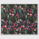 Papel De Presente Boho Botânico Flores de Aquarela Pretas