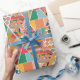 Este papel de embrulho tem um design de diamantes Boho com diferentes padrões em uma paleta de cores Boho.