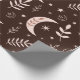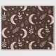 Papel De Presente Boho Moon com Folhas e Estrelas Brown