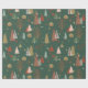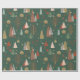 É um padrão que se destaca com árvores de Natal, decorações e flocos de neve.