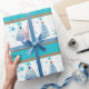 Papel De Presente Boho Teal Blue Árvore de Natal