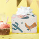 Belo padrão de boho com elementos ocidentais divertidos no estilo de Natal. Cor rosa rosa, verde escuro, ocre e branca em fundo bege.