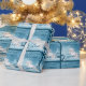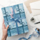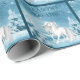 O papel de embrulho de Natal "Saudações" desta temporada de inverno apresenta um belo cavalo branco com um homem e uma cauda que fluem. Está desfrutando de uma bela noite de neve com pinheiros cobertos de neve.