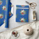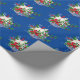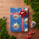 Papel de embrulho de na moda e bola de neve colorida com fundo azul.