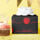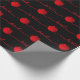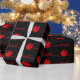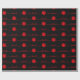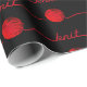 Bola vermelha brilhante de fio com texto em malha em preto para tricô.