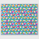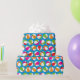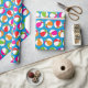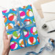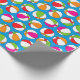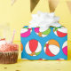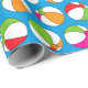 As bolas de praia em alaranjado, em cor-de-rosa, em verde, em vermelho e o branco em um fundo azul fazem um papel de embrulho do divertimento para aniversários do verão e outras ocasiões.