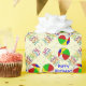 Papel de envolvimento do aniversário do divertimento da série do divertimento - caracterizando bolas de praia. Em um fundo de confetes do partido há dançarinos doidos, também, adicionando toda ao divertimento de uma celebração do aniversário.