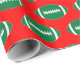 Verde divertido e vermelho, papel de embrulho de presente para jogadores de futebol, treinadores e fãs! O papel de embrulho apresenta um padrão de futebol uniforme com bolas verdes de futebol em fundo vermelho. Parece excelente debaixo da árvore de Natal e adiciona um toque especial divertido aos presentes de Natal para amantes de futebol!