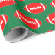 Diversão de papel de embrulho para jogadores, treinadores e fãs de Natal vermelho e verde! O papel de embrulho apresenta um padrão de futebol uniforme com bolas vermelhas num fundo verde escuro. Parece excelente debaixo da árvore de Natal e adiciona um toque especial divertido aos presentes de Natal para amantes de futebol!