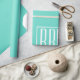 Papel De Presente Bold Modern 3 Iniciais Monograma | Branco Em Aqua