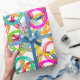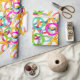Este papel de embrulho tem um design geométrico de três círculos aninhados e espalhados pelo design em várias cores.