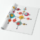 Este papel de embrulho tem uma design moderna do século médio de bolhas ligadas em linhas pretas.