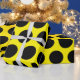 Papel de embalagem de bolinhas amarela e preta.